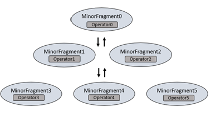 Major fragments do not actually perform any query tasks. Each major fragment is divided into one or multiple minor fragments (discussed in the next section) that actually execute the operations required to complete the query and return results back to the client.