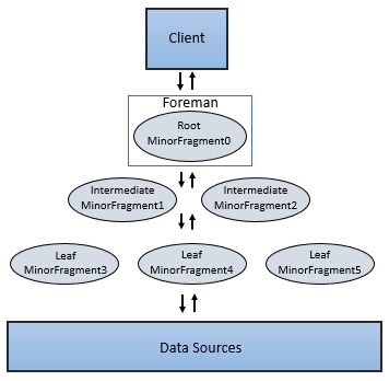 Major fragments do not actually perform any query tasks. Each major fragment is divided into one or multiple minor fragments (discussed in the next section) that actually execute the operations required to complete the query and return results back to the client.