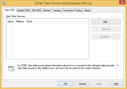Click the ODBC Administrator app icon. The ODBC Data Source Administrator dialog appears.