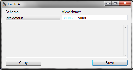 You can copy this query to file so that you can use it in Tableau. - Close the Drill Explorer window.