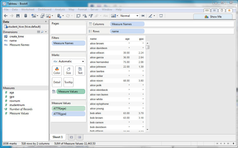 In this example, the table name is student_hive. - Click OK to complete the connection.